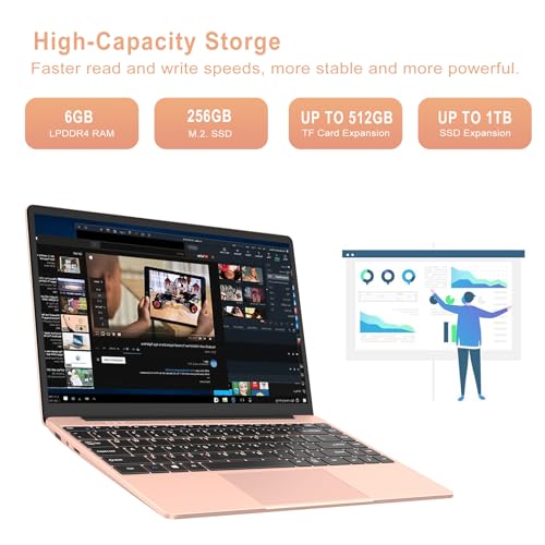 With 6 GB of LPDDR4 RAM and a 256 GB SSD, this laptop offers ample storage and enhanced performance. Plus, it includes an M.2 SATA expansion slot supporting up to 512 GB external storage and 1 TB SSD expansion, giving you plenty of space and faster read/write speeds for all your documents, photos, and videos.